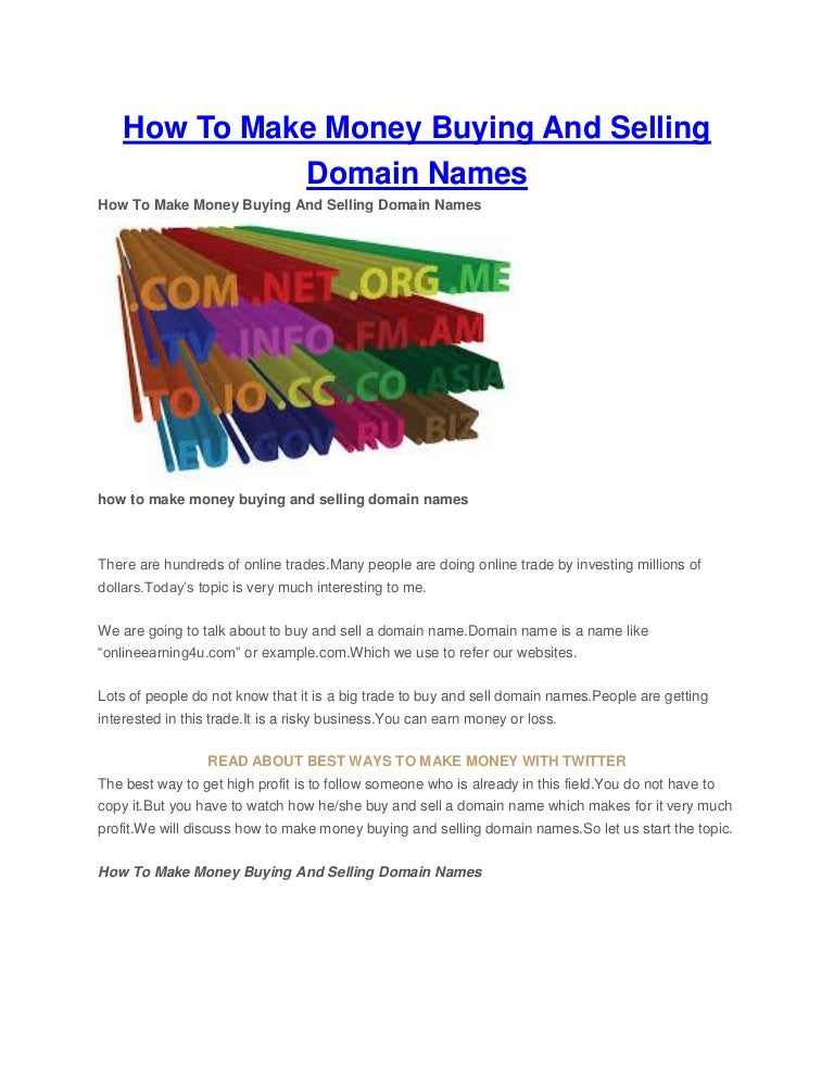 How To Make Money Buying And Selling Domain Names from cdn.slidesharecdn.com Thanks to the internet, there are now countless ways to make money online. Try using either ticketmaster or stubhub to find and buy tickets then selling them for a profit. Want to make money online this year? An ultimate source of 'how to earn money online'. Making money online has never been easier. Buy and sell domain names. You don't have much scope of selling your items outside your local you can buy domains from godaddy or other domain registrar for less than $10 & sell in future to the needy person for hundreds of dollars. Here are some basics of buying and selling to get.